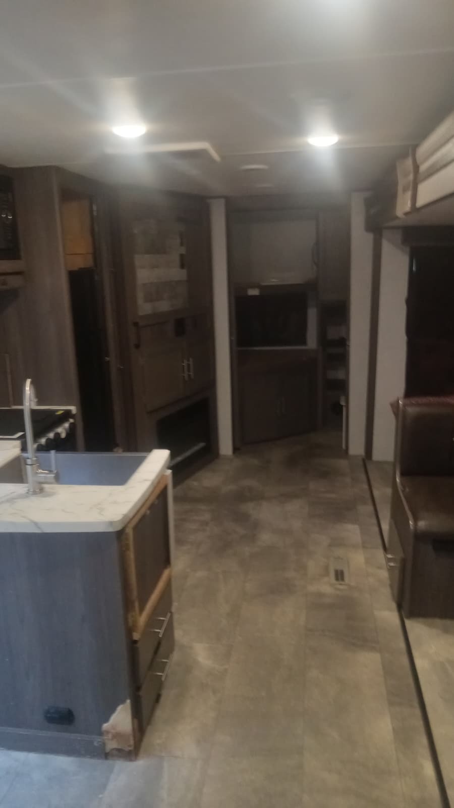 • Open floor plan with kitchen, sink, stove, oven, and fridge